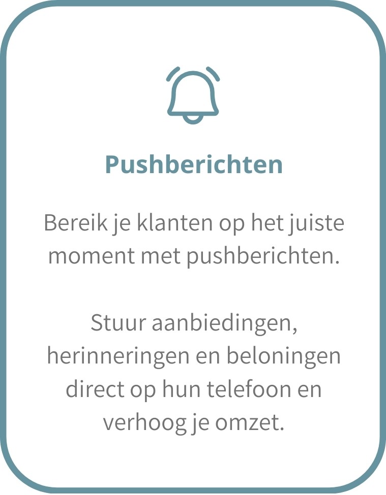 Je kunt pushberichten gebruiken om klanten op de hoogte te houden van nieuws, aanbiedingen, herinneringen of updates. Ze zijn een krachtige manier om direct contact te houden met klanten en hen te stimuleren actie te ondernemen, zoals het bezoeken van jouw locatie.
