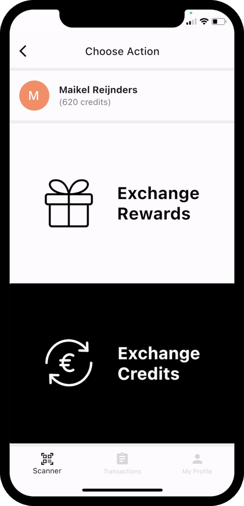 After a purchase you can reward the customer with Loyalty credits. You can give credits by scanning the customer's QR code (found in the customer's Urban Collect app) with the Urban Collect Business app. Then click on exchange credits and enter the number of credits you want to give.
